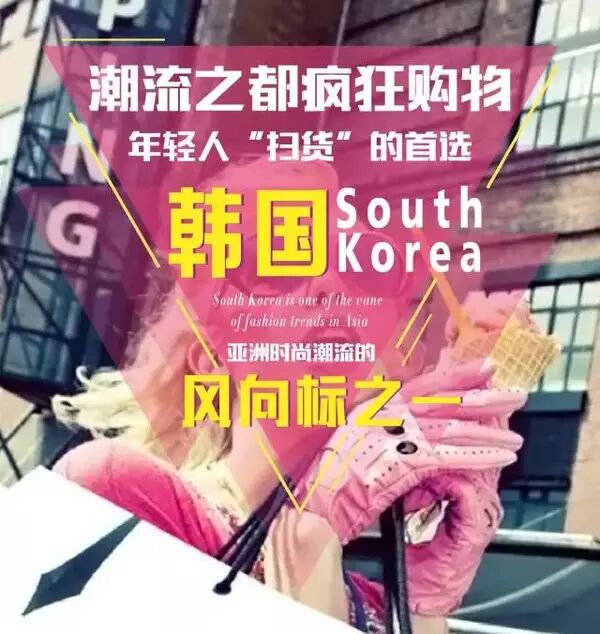 韩国是亚洲时尚潮流的风向标之一,韩剧中打扮前卫靓丽的主角们成为无数年轻人的时尚榜样。在中国引起新一轮韩流热潮的《来自星星的你》,女主角在剧中的服饰、鞋帽、包包,无一不成为热卖爆款。韩国的大型免税店以齐全的品牌,同等的质量,更优惠的价格吸引了无数中国游客到来。韩国的购物中心首尔,已成为很多中国年轻人“扫货”的首选。
