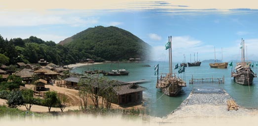 莞岛牛细浦(소세포)露天摄影棚 著名韩国古装剧《海神》曾经在此拍摄吸引了大批游客的到访,占地约1万6千坪的此摄影棚包括码头,船舶,旅馆等多种设施及唐代的各种展品,除此之外拍摄《太王四神记》东侧的新罗村还兼备民家和酒家等设施。 |