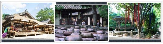 韩国民俗村是再现朝鲜时代(1392~1910)民家生活空间的野外展示场,这里展示着展现当时生活面貌的各种生活用品,农耕用具,工艺品等,并且每个季节都会进行农乐,走钢丝,传统婚礼表演和各种主题活动。在民俗村市场里还能品尝到切糕,绿豆煎饼,葱饼等韩国传统的美食和传统酒。电视剧《拥抱太阳的月亮》宫殿外一般百姓生活的市场,街道,夜间场景等就是取自于这里。 |