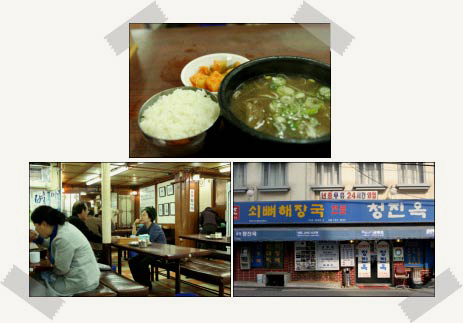 头天喝过酒,第二天三顺和真贤去的那家解酒汤店便是位于钟路的清进屋解酒汤。清进屋自67年开始营业,在钟路一带非常有名,曾被多家电视的餐饮节目介绍。