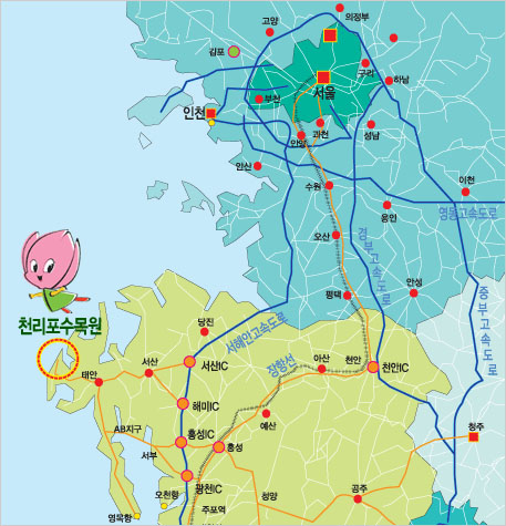 位于忠清南道泰安郡泰安海岸国立公园内的千里浦水木园是美籍韩国人闵丙渴(C.ferris.Miller, 1921年生)从1966年开始修建的,现在保有了国内外珍稀、特殊、面临灭种危机的植物等共7千多种。