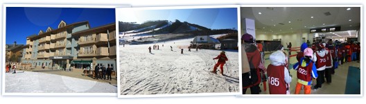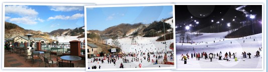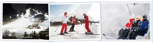 GS江村度假村滑雪场是一座综合性的滑雪度假村,乘坐大众交通工具前往仅需要1个小时左右的时间,滑雪场分初、中、高级建有10道滑雪道和6条缆车线路。溪谷型构造的滑雪道具有极高的安全性,而沿着山脊型构造的滑雪道滑下的过程中能欣赏到开阔的景观。主要以初、中级滑雪板爱好者为对象开设的“Channel Park”,是广大滑雪板初学者最爱光顾的地方,同时这里还运营着系统的学习滑雪和滑雪板技术的滑雪学校。GS江村度假村滑雪场一般在每年的12月开始营业直到次年3月截止.可乘坐京春线双轨地铁从上凤站直接坐到白杨里(Elysian Gangchon)站。 |