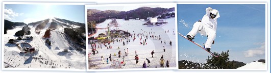 在规模和安全性上从国际滑雪联盟获得认可的星宇滑雪度假村,拥有世界级规模的“Half pipe”、“Board Walk”和“snowboard”,是广大滑雪爱好者们最喜欢前来的地方。这里的滑雪道从初级到专业级全部具备,共计19条滑雪道,而且为满足滑雪爱好者的要求,开设了趣味和激情相结合的“mogul”线路。“mogul”线路通过人为的设计,增加了很多高低不平的场景,适合技术高超者体验。在这座韩国最大规模的“趣味乐园”里,尽情的体验滑雪板运动的乐趣,这里还具备供滑雪爱好者们尽情展示高超技术的“C box”,“X box”,“Wall box”等10多项娱乐项目。 |