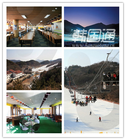 滑雪橇滑道(7面)、滑雪升降机(3架)、雪橇场(1面)、餐厅(韩式、西式)、冒险游戏设施、极限训练营、滑雪商店、讲堂、会议室、野营场、Rock咖啡馆、公寓酒店(50间)、台球厅、练歌房、超市、快餐小吃、青年旅馆(78间)、出租房、金枪鱼生鱼片餐厅等。