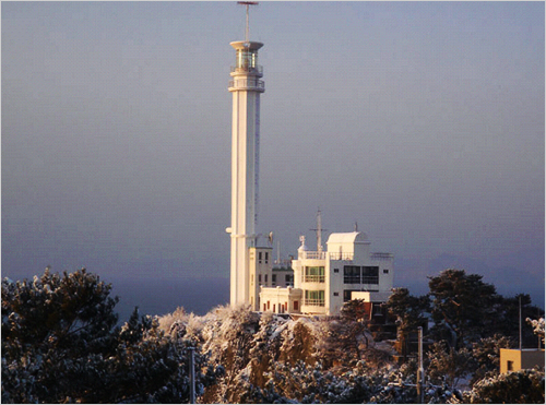 以前的灯塔是由办公室、住所、灯塔组成的复合建筑,正中央树立着9.2m的灯塔,由红色的壁砖和美松点缀,出入口天井雕刻着当时象征皇室的李子花模样的花纹,用铁皮做成的屋顶上涂着防锈的沥青。加德岛位于韩半岛的东南端,是东边沙下区多大浦、西南巨济岛东北海域、北部环太平洋的关隘,与东北亚枢纽港湾釜山港新港临近,距离镇海市龙院洞4km,巨济岛10km。 自古以来,加德岛被视为海上运输和军事要塞,在朝鲜王朝中宗39年(1544年),在这里设立加德镇和天城镇。壬辰倭乱时,这里曾发生过激烈的战斗。作为进出镇海湾的要冲——加德岛灯塔是在大韩帝国末期1909年12月修建的,灯塔建筑具有西欧建筑风格。2003年9月,这里被指定为釜山市有形文化财第50号,并被海洋水产部指定为永久保存设施。灯塔于2002年进行重建,建成灯塔高40.5m,成八角形,是韩国高度第二位的灯塔。 最初点灯日 – 1909年12月 构造 – 白八角混凝土构造(40m) 同质 – 闪白灯,12秒一次(FlW12s) 特征 – 位于洛东江河口处,自朝鲜时代起,便开始燃烽火,引导过往船只。这里还运营者灯塔体验学校,可以了解到烟台峰等古代历史。 |