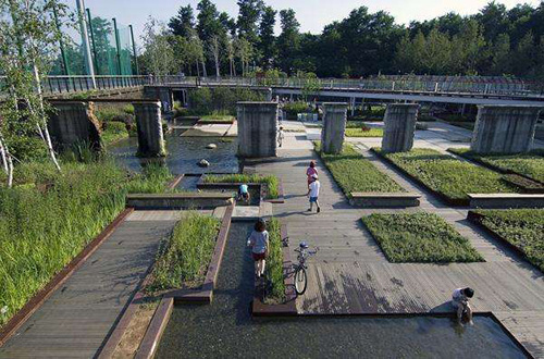 西首尔湖水公园位于首尔特别市阳川区新月洞,是由“新月净水厂”改建而成的环保公园,于2009年开园。公园总占地面积217946平方米,以“水”和“再生”为主题,为首尔西南部最具代表性的主题公园,曾荣获美国园林建筑师协会2011年颁发的综合设计类荣誉奖。