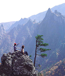 雪岳山共有4个入口,其中以束草境内的神兴寺地区最为有名。此外还有襄阳郡内的五色地带、麟蹄郡的百潭寺地区和将帅台地区。 一般登山游客选择非专业性的半日或一日登山路线为佳。雪岳山势险陡,无韩国导游同行在山上留宿较危险。若有导游陪同,选择3天2夜的旅游路线也不错。沿山体蜿蜒畅流的溪水和挺拔直立的山峰定会让雪岳山之旅成为游客一生难忘的回忆!这次要为您介绍的是无需导游陪同的半日和一日登山路线。 |