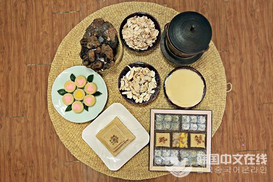 茯苓是在枯萎的松树根下长出的蘑菇,有利尿、保健和镇静的效果。加入茯苓而制成的药糕即为茯苓造化糕。被指定为韩国食品名人(53号)的金英淑(音)女士跟随婆婆学习制糕的方法。药糕味道好、对身体也好,因此值得推荐给消化系统弱的患者、老人和孩子。