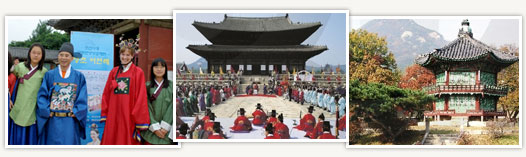 景福宫、庆熙宫、昌庆宫等传统宫殿是外国游客的韩国之游一定要到地方。这些宫殿中进行着传统文化再现及宫中服装试穿活动,并提供拍照留念服务。跆拳道体验活动也在进行中,是游客们亲身体验韩国文化的好机会。