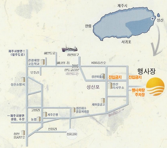 - 在济州市外巴士客运站搭乘西归浦行直行巴士 → 城山日出峰入口下车(大约需要1个小时)
