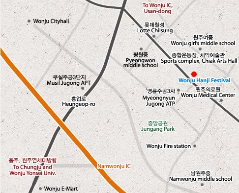 向韩纸主题公园方向(老. 原州韩纸公园)方向步行10分钟