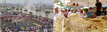 每周六举办的风物市场上有各种小吃,好看好玩的东西可以购买。南道地区生产的长兴蛤,韩牛,传统豆腐等各种饮食可以品尝,餐饮店很多。还进行各种风物游戏表演和歌舞音乐会。
