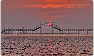 韩国首座跨海大桥,长达470m,采用木质材料建造,白天可在桥上观察到各种各样的生物,日落时在桥上观赏汐水退去的景象时最为美丽。夜再深一点,曾岛上空的苍穹就洒满了密密的星辰,从日出到月上,自然生态奇观变幻多样,让到此的游客目不暇接,流连忘返。