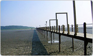 弹涂鱼是栖息在这片滩涂的代表性生物,也是在沙滩上最常见的。涨潮时,海水会漫过桥面。退潮后,广饶的沙滩上就现出弹涂鱼的身影了。在绵长的沙滩尽头是一个小型公园,和鱼儿玩累了,可到公园的花间树下稍事休息。