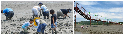 沿着松软的沙滩,和波浪追赶着做游戏,累了就到岸边的松林里洗个森林浴,还有什么比这些更惬意呢?海水浴场每年从7月20日到8月20日大约一个月间,迎接来自世界各地的游人,此时喜欢戏水的你,可千万不能错过好时机!海水浴场设有卫生间和洗澡间,利用起来非常方便。海水浴场开放期间还将举办‘新安锗(Germanium)滩涂庆典’,届时会进行滩涂自然探访、海泥面膜、滩涂滑橇等丰富多采的娱乐活动。