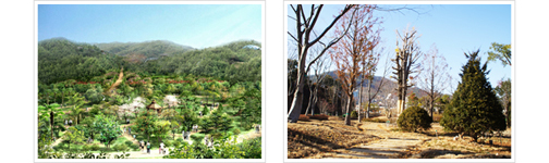在树木观赏园中,种植着大量的树木和顺天栽培的山蹴鞠,风景非常美丽。 此外,这里一年四季景色各异的扁柏树林、可欣赏到东川和整个园艺博览会会场全景的树木园展望台也值得一看。