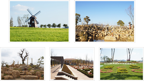 目前已经完工98%(以3月为准)的世界庭园由来自德国、荷兰、法国、中国等11个海外国家的庭园和由国内外城市、企业、作家等的共同参与的60个参与庭园、象征顺天湾国际园艺博览会举办意义的11个主题庭园组成。