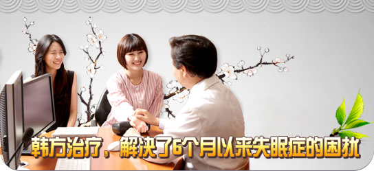 韩方治疗失眠症通过和患者商谈,找出失眠的原因后用汤药和艾灸治疗,通过针灸,拔火罐(韩方治疗中的一种,用小罐子形状的容器贴在身体上,除去体内不好的血液的方法)刺激两脑的神经。失眠症根据不同人不同原因,会有不同的汤药处方。 |