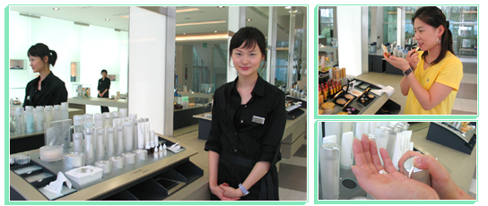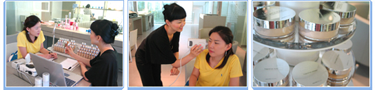 1层的品牌化妆品专卖场及免费试用区陈列着太平洋公司的5大品牌,无论购买与否,顾客均可免费试用所有化妆品,从基本的护肤品到多彩的化妆品,应有尽有。若不清楚适合自己的色调,可向一旁的化妆师寻求专业的建议。 |
