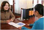 在卡片上写出自己的介绍事项并接受 Chromatherapy商谈。色彩疗法的‘Chromatherapy’是利用手上的反射点来测定自身需要色彩的疗法。接受管理期间,适合自己的色彩,只用眼睛注目就可以收到效果。此外,通过皮肤商谈,还可以进行雀斑,皱纹改善等的集中管理。最近,感到皮肤干燥,身体酸痛的您可以好好的护理一下儿啦!