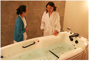 “手按摩”中的又一个体验是vichy shower。自上而下的9个水柱刺激从头部到脚底的血点,使您全身通畅。此处只提供给女士使用,且水流不剧烈,约需10~15分钟。