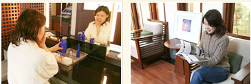 •STEP2 换衣&卸妆 接受完商谈以后,换上浴衣,进入Powder Room进行卸妆。卸妆用品等都是瑞十完美的有名制品。