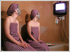 静坐15分钟,让艾草加热后散发出的热气进入身体,可改善女性白带过多或经痛的症状。 选择适用于皮肤的pack加以按摩,可恢复皮肤弹性和光泽。Pack有石膏、人参、芦荟几种,护理需40分钟左右。 ‘JJ 泥巴汗蒸幕’还特意为外国游客准备韩国的传统服装,游客可租用喜欢的服装拍摄纪念照,但相机需自备。 |