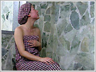 置身70高温下5-10分钟,将体内的废弃物通过汗液排出体外。为防止热气将皮肤蒸红,用布覆盖全身。长时间呆在汗蒸幕室会引起头晕,最好不要超过限制时间。 |