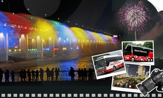 搭乘2层巴士,可欣赏到汉江上的主要桥梁和盘浦大桥上美丽的喷泉,全程约1个小时,盘浦大桥上的月光彩虹喷泉非常美丽,如梦如幻。随着音乐声起伏雀跃的喷泉,在灯光的照耀下,折射出五彩斑斓的颜色,令人迷醉。然后绕南山山麓走,过南山图书馆和南大门市场,返回清溪广场,结束旅程。虽然旅程很短,但却可以充分领略到首尔夜景的魅力。