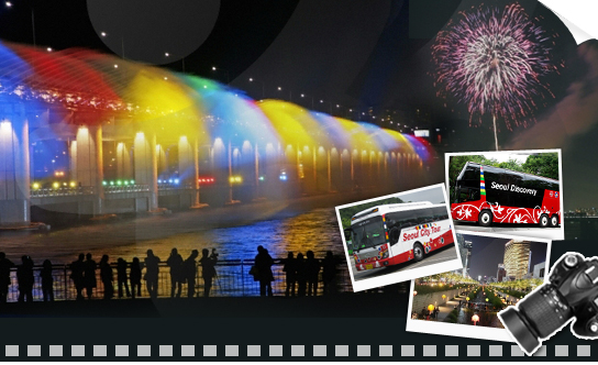 搭乘2层巴士,可欣赏到汉江上的主要桥梁和盘浦大桥上美丽的喷泉,全程约1个小时,盘浦大桥上的月光彩虹喷泉非常美丽,如梦如幻。随着音乐声起伏雀跃的喷泉,在灯光的照耀下,折射出五彩斑斓的颜色,令人迷醉。然后绕南山山麓走,过南山图书馆和南大门市场,返回清溪广场,结束旅程。虽然旅程很短,但却可以充分领略到首尔夜景的魅力。 ☞ 路线: 光化门(광화문) -> 麻浦大桥-西江大桥-汉南大桥 -> 盘浦大桥月光彩虹喷泉(반포대교 달빛무지개분수)-> (铜雀大桥-圣水大桥-汉南大桥) -> 南山图书馆(남산도서관) 前-> 南大门市场(남대문시장)前 -> 清溪广场(청계광장) |